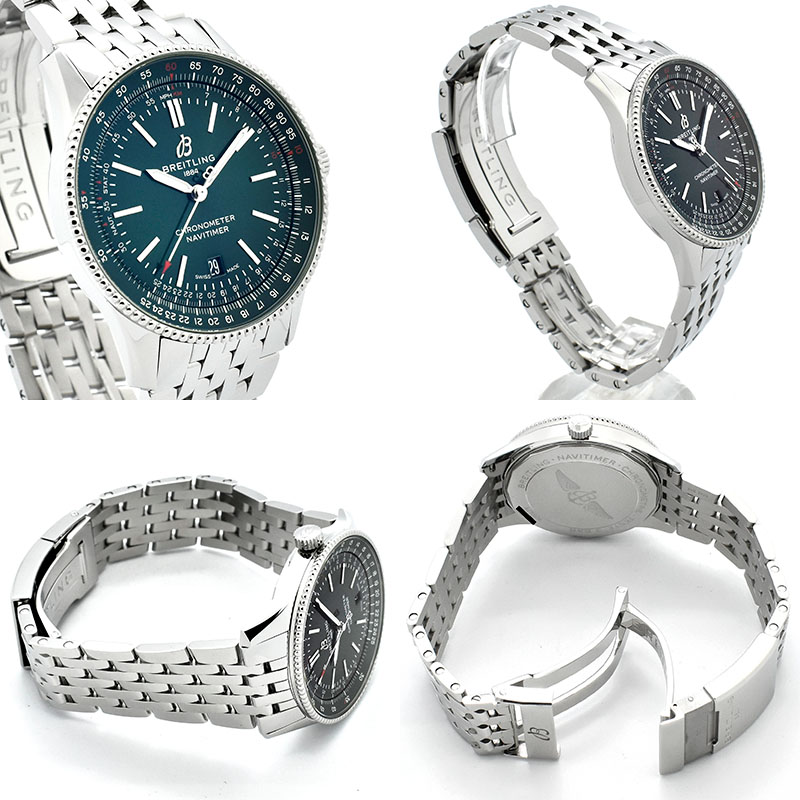 TOPブライトリング ナビタイマー ブライトリング BREITLING ナビタイマー オートマチック41 A17326361L1A1 41mm グリーン 新品 日本定価: ¥649,000(税込) 価格: ¥498,000 (税込) 販売期間: WOC2年保険: 選択してください 加入する(+¥28,600-) 加入しない 数量: 本 在庫: 在庫切れ ※価格は前回価格です。 在庫 在庫切れ ※価格は前回価格です。 WOC2年保険加入する(+¥28,600-)加入しない 商品詳細 DETAILSブランドブライトリング BREITLING商品名ナビタイマー オートマチック41A17326361L1A1状態新品ケース径41mm材質SS(ステンレススチール)機械自動巻文字盤グリーンベルトSS(ステンレススチール)付属品箱 国際保証書保証2年店長メモ【2022年新作】 往年のロゴである"B"ロゴを配し、従来のナビタイマーには無かった3針タイプになった事により、より高い視認性を誇ります。 ケース径も41mmと使い勝手の良い大きさで、クロノグラフが無いことですっきりとした印象に仕上がっています。 【関連商品】 ブライトリング BREITLING ナビタイマーB01 クロノグラフ 41 AB0139241C1A1 ブルー/ブラック 新品 参考定価: ¥1,221,000(税込) ¥935,000(税込) 在庫切れ ※価格は前回価格です。 ブライトリング BREITLING ナビタイマー B01 クロノグラフ 43 ジャパンエディション AB0121A21B1A1 43mm USED 中古 参考定価: ¥1,215,500(税込) ¥758,000(税込) 在庫切れ ※価格は前回価格です。 ブライトリング BREITLING ナビタイマーB01 クロノグラフ 43 AB0138211B1A1 ブラック/シルバー 新品 参考定価: ¥1,243,000(税込) ¥977,000(税込) 在庫切れ ※価格は前回価格です。 ブライトリング BREITLING ナビタイマーB01 クロノグラフ 41 AB0139211G1A1 シルバー USED 中古 参考定価: ¥1,221,000(税込) ¥818,000(税込) 在庫 1 本 ブライトリング BREITLING ナビタイマーB01 クロノグラフ 43 AB0138241C1A1 アイスブルー/ブラック USED 中古 参考定価: ¥1,243,000(税込) ¥880,000(税込) 在庫切れ ※価格は前回価格です。 ブライトリング BREITLING ナビタイマー1 B01 クロノグラフ 43 パンナムエディション AB01212B1C1A1(A022P-1OCA) SS 43mm USED 中古 参考定価: ¥1,138,500(税込) ¥798,000(税込) 在庫切れ ※価格は前回価格です。 ブライトリング BREITLING ナビタイマー01 AB0127211C1A1 46mm ブルー/シルバー USED 中古 参考定価: ¥1,188,000(税込) ¥778,000(税込) 在庫切れ ※価格は前回価格です。 ブライトリング BREITLING ナビタイマーB01 クロノグラフ 43 AB0138241C1P1 アイスブルー/ブラック 新品 参考定価: ¥1,133,000(税込) ¥889,800(税込) 在庫切れ ※価格は前回価格です。 ブライトリング BREITLING ナビタイマー01 A022B01WBA(AB0120) 43mm USED 中古 参考定価: ¥990,000(税込) ¥568,000(税込) 在庫切れ ※価格は前回価格です。 ブライトリング BREITLING ナビタイマー01 ブラックブラック AB0121 日本400本限定 43mm ブラック USED 中古 参考定価: ¥1,001,000(税込) ¥678,000(税込) 在庫切れ ※価格は前回価格です。 ブライトリング BREITLING ナビタイマーワールド A24322 ブラック 46mm USED 中古 参考定価: ¥825,000(税込) ¥498,000(税込) 在庫切れ ※価格は前回価格です。 ブライトリング BREITLING ナビタイマー キャトル K334B11KBA(K33340) 18KYG 38mm 日本100本限定 USED 中古 ¥1,080,000(税込) 在庫切れ ※価格は前回価格です。
