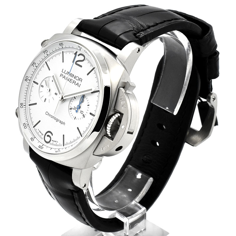TOPパネライ ルミノール44mm パネライ PANERAI ルミノール クロノ PAM01218 44mm ホワイト 新品 参考定価: ¥1,229,800(税込) 価格: ¥1,168,000 (税込) 販売期間: WOC2年保険: 選択してください 加入する(+¥46,200-) 加入しない 数量: 本 在庫: 在庫切れ ※価格は前回価格です。 在庫 在庫切れ ※価格は前回価格です。 WOC2年保険加入する(+¥46,200-)加入しない 商品詳細 DETAILSブランドパネライ PANERAI商品名ルミノール クロノ PAM01218状態新品材質SS(ステンレススチール)機械自動巻文字盤ホワイトベルト革ベルト付属品箱 国際保証書保証2年店長メモクロノグラフのプッシュボタンを左側に配置したパネライらしい特徴的なデザインです。 ダイヤルカラーにホワイトが採用され、クロノグラフ秒針と積算計の針のブルーがアクセントになった、爽やかで美しいモデルです。/100m防水 【関連商品】 パネライ PANERAI ルミノール1950 8デイズ GMT オロロッソ PAM00576 R番 44mm 18KRG ブラウン 手巻き USED 中古 参考定価: ¥3,663,000(税込) ¥2,480,000(税込) 在庫切れ ※価格は前回価格です。 パネライ PANERAI ルミノールマリーナ ESteel Grigio Roccia PAM01358 44mm 新品 ¥1,098,000(税込) 在庫切れ ※価格は前回価格です。 パネライ PANERAI ルミノール ブルー マーレ PAM01085 44mm 手巻き 新品アウトレット 日本定価: ¥804,100(税込) ¥668,000(税込) 在庫切れ ※価格は前回価格です。 パネライ PANERAI ルミノール ブルー マーレ PAM01085 44mm 手巻き X番 USED 中古 日本定価: ¥804,100(税込) ¥628,000(税込) 在庫切れ ※価格は前回価格です。 パネライ PANERAI ルミノールマリーナ スペッチオ ブルー PAM01316 Y番 44mm ブルー USED 中古 参考定価: ¥1,342,000(税込) ¥798,000(税込) 在庫切れ ※価格は前回価格です。 パネライ PANERAI ルミノールマリーナ ESteel ブループロフォンド PAM01157 Y番 44mm USED 中古 日本定価: ¥1,252,900(税込) ¥928,000(税込) 在庫切れ ※価格は前回価格です。 パネライ PANERAI ルミノール1950 3デイズ GMT パワーリザーブ アッチャイオ PAM01321 44mm W番 USED 中古 参考定価: ¥1,402,500(税込) ¥798,000(税込) 在庫切れ ※価格は前回価格です。 パネライ PANERAI ルミノールマリーナ クアランタ PAM01270 40mm ブルー 新品 日本定価: ¥963,600(税込) ¥868,000(税込) 在庫切れ ※価格は前回価格です。 パネライ PANERAI ルミノールマリーナ スペッチオ ブルー PAM01316 44mm ブルー 新品 日本定価: ¥1,342,000(税込) ¥1,080,000(税込) 在庫切れ ※価格は前回価格です。 パネライ PANERAI ルミノール1950 3デイズ オートマティック アッチャイオ PAM00722 42mm V番 USED 中古 日本定価: ¥1,184,700(税込) ¥748,000(税込) 在庫切れ ※価格は前回価格です。