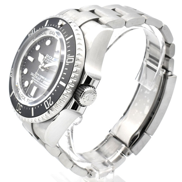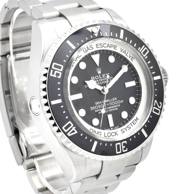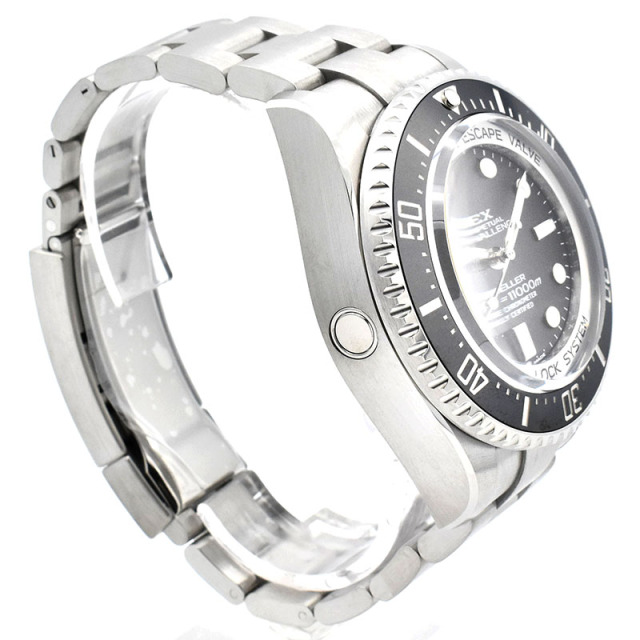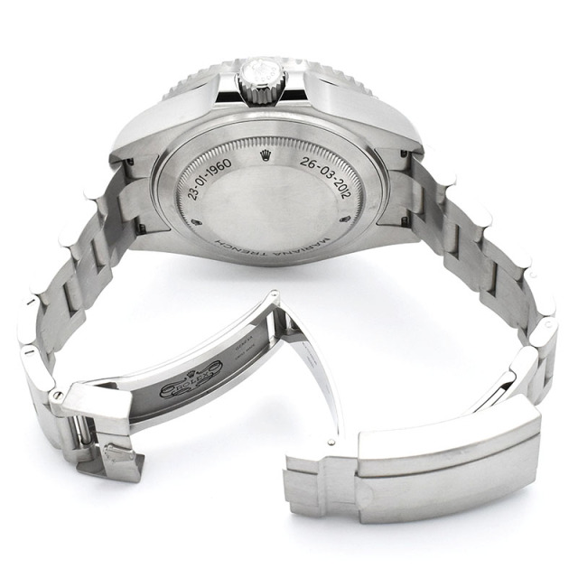 | 店長メモ | ロレックスの最深深度記録を樹立し、その防水性能は驚異の11,000mを誇ります。 ケースバックにはディープシースペシャルが水深10,916mの潜航に成功した日"23-01-1960"とジェームズ・キャメロンが操縦する潜水艇のロボットアームに取り付けられ、水深10,908 mの潜航に成功した日"26-03-2012"が刻印された正に特別と言える1本です。 ケースサイズはロレックス最大の50mmと驚異的ですが、材質にRLXチタンを採用した事で見た目ほどの重さではない事も特徴です。 是非1度試着頂いて、他に類を見ないサイズ感を体感してみてください。 |