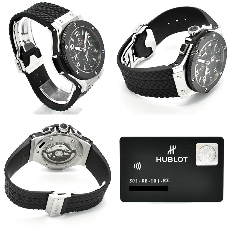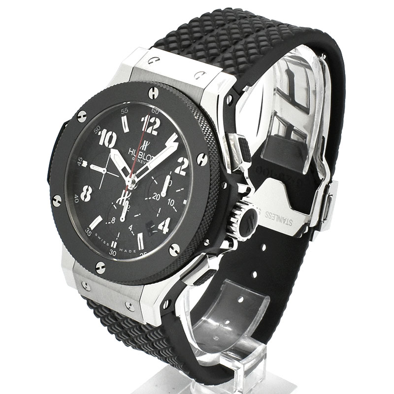 | 店長メモ | ウブロ人気の火付け役になった最もスタンダードなビッグバンです。 44mmのビッグケースにセラミックベゼルを組み合わせた斬新なデザインが最大の魅力です。 自動巻クロノグラフを搭載し、デイト表示、100m防水など実用性も高く一目見てウブロとわかる代表モデルです。 |