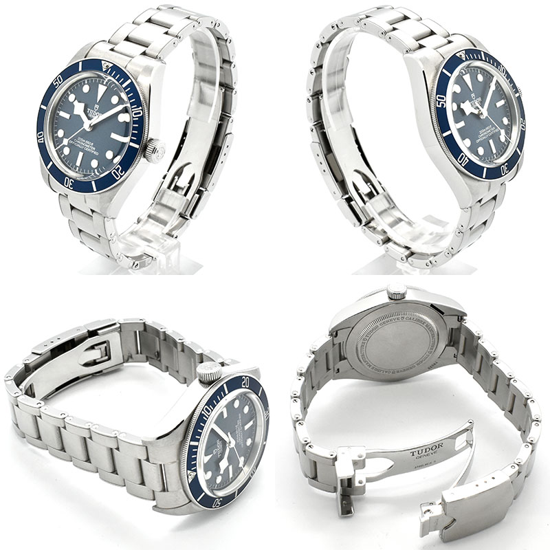 | 店長メモ | 【2020年新作】 チューダーが1958年に発表した"サブマリーナ ビッグクラウン Ref.7924"からインスピレーションされたのが"ブラックベイ フィフティエイト"になります。 こちらは2020年に新しく加わったブルーのベゼルとダイヤルのモデルです。 ブラックベイを象徴するイカサブ針を採用したヴィンテージ感溢れるデザインながら、ムーブメントには自社製キャリバー"MT5402"を搭載しパワーリザーブは70時間を誇ります。/200m防水 |