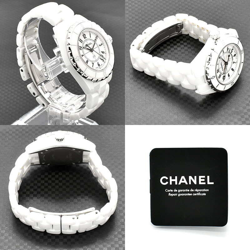 TOPシャネル レディース シャネル CHANEL J12 ホワイトセラミック H0968 レディース クォーツ 33mm USED 中古 参考定価: ¥539,000(税込) 価格: ¥248,000 (税込) 販売期間: WOC2年保険: 選択してください 加入する(+¥28,600-) 加入しない 数量: 本 在庫: 在庫切れ ※価格は前回価格です。 在庫 在庫切れ ※価格は前回価格です。 WOC2年保険加入する(+¥28,600-)加入しない 商品詳細 DETAILSブランドシャネル CHANEL商品名J12 33mm H0968状態USED 中古 *通常使用に伴う多少の小傷や使用感などありますが、大きなダメージはありません。ケース径33mm材質セラミック機械クォーツ文字盤ホワイトベルトセラミック付属品修理保証書(記載日付-2018/8)*画像に載っている物で全てです保証6ヶ月腕回り最大約14.5cm店長メモシャネルのレディースモデルの中でも圧倒的な人気を得るJ12の33mm白セラミックです。 オールホワイトでとても可愛いデザインです。 【関連商品】 シャネル CHANEL マドモアゼル J12 ラ パウザ H7609 ブラックセラミック 38mm 数量限定 未使用品 参考定価: ¥1,694,000(税込) ¥1,150,000(税込) 在庫切れ ※価格は前回価格です。 シャネル CHANEL J12 ウォンテッド ドゥ シャネル H7418 38mm 限定生産 新品 日本定価: ¥1,386,000(税込) ¥818,000(税込) 在庫切れ ※価格は前回価格です。 シャネル CHANEL J12 クロマティック Ref.H2979 38mm チタンセラミック USED 中古 参考定価: ¥715,000(税込) ¥338,000(税込) 在庫切れ ※価格は前回価格です。 シャネル CHANEL J12 ダイヤベゼル Ref.H6419 33mm USED 中古 日本定価: ¥2,134,000(税込) ¥898,000(税込) 在庫切れ ※価格は前回価格です。 シャネル CHANEL J12 ファントム H6346 33mm USED 中古 日本定価: ¥990,000(税込) ¥438,000(税込) 在庫切れ ※価格は前回価格です。 シャネル CHANEL ボーイフレンド ツイード ベゼルダイヤモンド H5318 34.6×26.7mm クォーツ USED 中古 日本定価: ¥1,694,000(税込) ¥598,000(税込) 在庫切れ ※価格は前回価格です。 シャネル CHANEL J12 H5700 38mm 自動巻き 新品 日本定価: ¥1,320,000(税込) ¥858,000(税込) 在庫切れ ※価格は前回価格です。 シャネル CHANEL マドモアゼル J12 ラ パウザ H7481 38mm USED 中古 日本定価: ¥1,595,000(税込) ¥868,000(税込) 在庫切れ ※価格は前回価格です。 シャネル CHANEL J12 ホワイトセラミック H5704 ホワイトシェル 12Pダイヤ クォーツ 33mm 新品 日本定価: ¥1,034,000(税込) ¥742,800(税込) 在庫切れ ※価格は前回価格です。 シャネル CHANEL J12 キャリバー12.2 H5699 33mm 自動巻き ホワイト 新品 日本定価: ¥1,259,500(税込) ¥762,500(税込) 在庫切れ ※価格は前回価格です。 シャネル CHANEL J12 H5698 クォーツ ホワイト 33mm レディース 新品 参考定価: ¥957,000(税込) ¥612,000(税込) 在庫切れ ※価格は前回価格です。