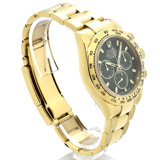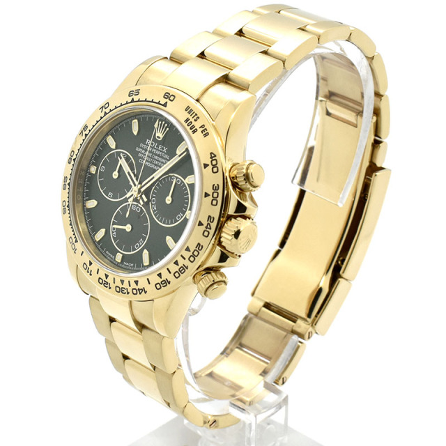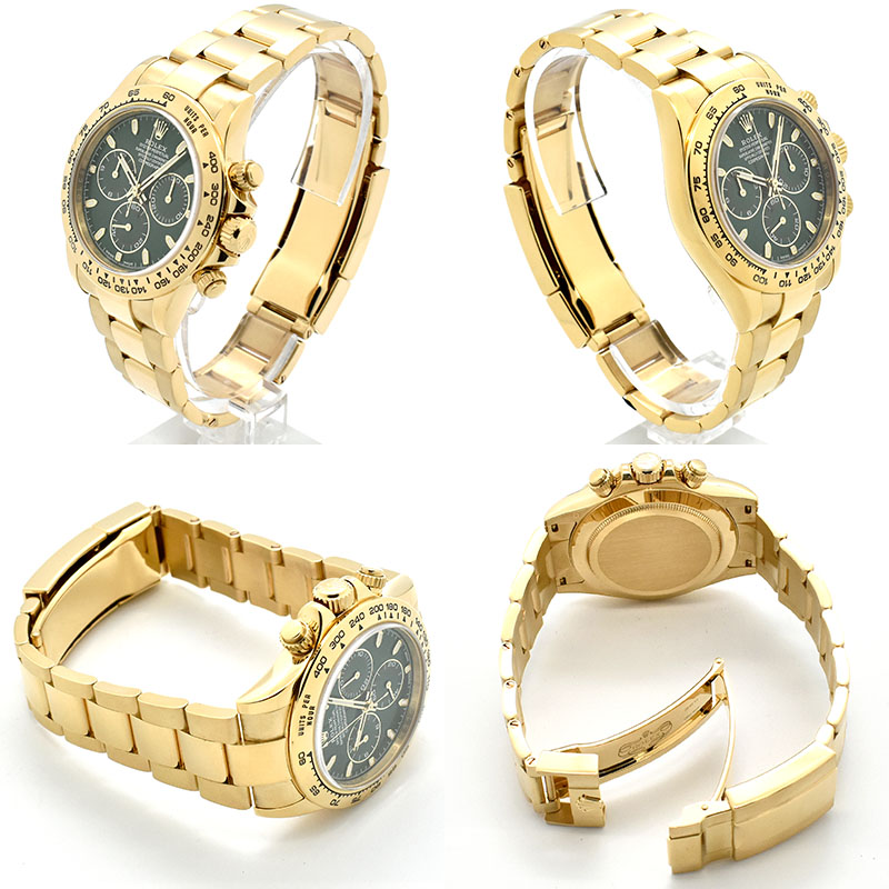 | 店長メモ | イエローゴールドケースにロレックスのコーポレートカラーでもあるグリーンダイアルを組み合わせたデイトナです。 流通量が非常に少なく希少なモデルな上、こちらは保証書にGREEN表記があるダイヤル交換をしていない証の個体です。 お探しされていた方はお早目のお問合せをお薦め致します。/100m防水 |