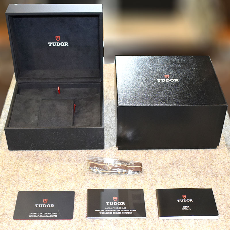 | 店長メモ | 【2021年新作】 チューダーが1958年に発表した"サブマリーナ ビッグクラウン Ref.7924"からインスピレーションされたのが"ブラックベイ フィフティエイト"になります。 こちらはチューダー初のブティック限定モデルとして、ケースやリューズ、ブレスレットまでブロンズ製のブラックベイ フィフティエイトです。 ブラックベイを象徴するイカサブ針も採用したヴィンテージ感溢れるデザインながら、ムーブメントには自社製キャリバー"MT5400"を搭載しパワーリザーブは70時間を誇ります。 |