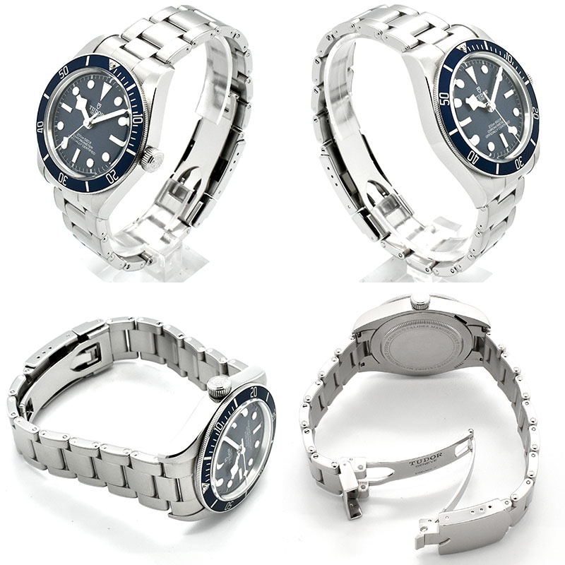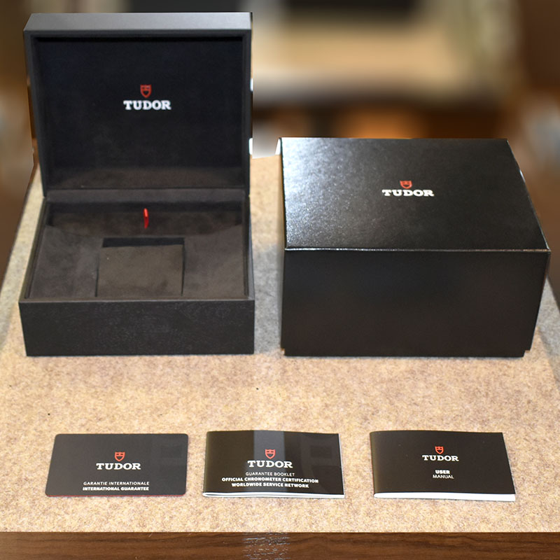 | 店長メモ | 【2020年新作】 チューダーが1958年に発表した"サブマリーナ ビッグクラウン Ref.7924"からインスピレーションされたのが"ブラックベイ フィフティエイト"になります。 こちらは2020年に新しく加わったブルーのベゼルとダイヤルのモデルです。 ブラックベイを象徴するイカサブ針を採用したヴィンテージ感溢れるデザインながら、ムーブメントには自社製キャリバー"MT5402"を搭載しパワーリザーブは70時間を誇ります。/200m防水 |