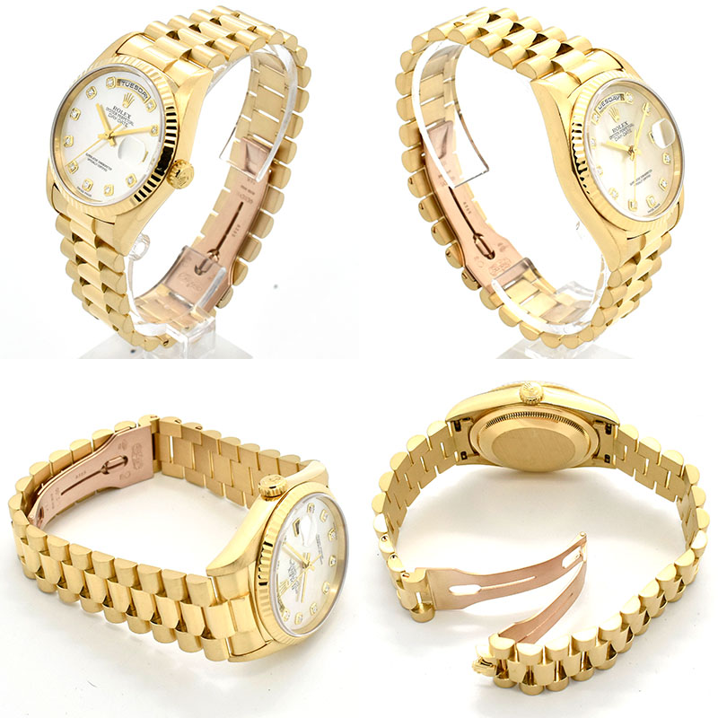 TOPロレックス メンズスタンダード&デイデイト ロレックス ROLEX デイデイト Ref.18238NG 36mm 18KYG W番 ホワイトシェル 10Pダイヤ USED 中古 価格: ¥2,980,000 (税込) 販売期間: WOC2年保険: 選択してください 加入する(+¥46,200-) 加入しない 数量: 本 在庫: 在庫切れ ※価格は前回価格です。 在庫 在庫切れ ※価格は前回価格です。 WOC2年保険加入する(+¥46,200-)加入しない 商品詳細 DETAILSブランドロレックス ROLEX商品名デイデイト Ref.18238NG状態USED 中古 *当店で外装仕上げ済みです。材質18Kイエローゴールド機械自動巻文字盤ホワイトシェル/10Pダイヤベルト18Kイエローゴールド付属品箱 国際保証書(記載日付-1998/3)*画像に載っている物で全てです保証6ヶ月腕回り最大約18cm店長メモ【W番】 *ケースとブレスレットにイエローゴールドを使用し、ダイヤルにはホワイトシェルと10Pダイヤをセッティングしたロレックスの最上級ラインに相応しい煌びやかで高級感溢れるモデルです。 【関連商品】 ロレックス ROLEX オイスターパーペチュアル 31 Ref.277200 ターコイズブルー/セレブレーションモチーフ 31mm 新品 ¥1,450,000(税込) 在庫切れ ※価格は前回価格です。 ロレックス ROLEX オイスターパーペチュアル 36 Ref.126000 ターコイズブルー 36mm 新品 ¥2,550,000(税込) 在庫切れ ※価格は前回価格です。 ロレックス ROLEX オイスターパーペチュアル 41 Ref.124300 グリーン 41mm USED 中古 ¥1,550,000(税込) 在庫切れ ※価格は前回価格です。 ロレックス ROLEX デイトジャスト36 Ref.126234G 36mm ブルーフル―テッド 新品 ¥2,050,000(税込) 在庫切れ ※価格は前回価格です。 ロレックス ROLEX ターノグラフ Ref.116261 18KPG×SS ブラック F番ルーレット 36mm USED 中古 ¥1,350,000(税込) 在庫切れ ※価格は前回価格です。 ロレックス ROLEX デイトジャスト サンダーバード Ref.16264 P番 36mm USED 中古 ¥868,000(税込) 在庫切れ ※価格は前回価格です。 ロレックス ROLEX レディ デイトジャスト 28 Ref.279174 ホワイトローマ SS×WG USED 中古 ¥1,198,000(税込) 在庫切れ ※価格は前回価格です。 ロレックス ROLEX デイトジャスト 31 Ref.278341RBR チョコレート/VIダイヤ 新品 参考定価: ¥2,266,000(税込) ¥2,180,000(税込) 在庫切れ ※価格は前回価格です。