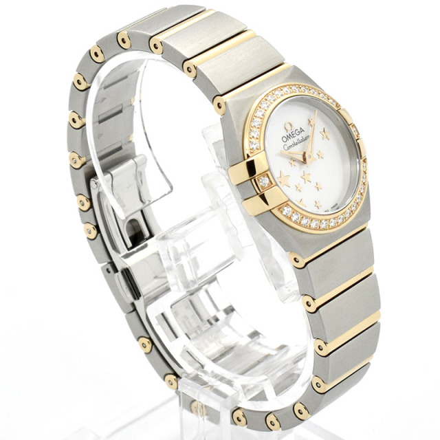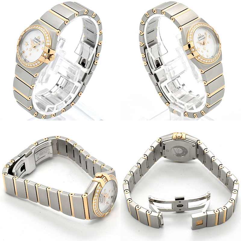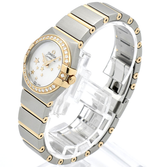 | 店長メモ | *オメガのラインナップの中で女性に圧倒的な支持を得るコンステレーションコレクション。 こちらはレッドゴールドのコンビモデルで、文字盤には高級感溢れるホワイトシェルにゴールドの星が散りばめられています。 ベゼルにはダイヤモンドがセッティングされ、シンプルなデザインながら華やかで魅力溢れる仕上がりです。 |