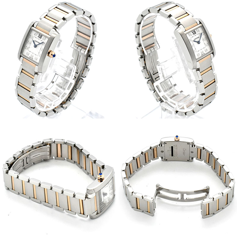 TOPカルティエ レディース カルティエ CARTIER タンクフランセーズ SM WE110004 25×20mm 11Pダイヤ USED 中古 参考定価: ¥907,500(税込) 価格: ¥538,000 (税込) 販売期間: WOC2年保険: 選択してください 加入する(+¥28,600-) 加入しない 数量: 本 在庫: 在庫切れ ※価格は前回価格です。 在庫 在庫切れ ※価格は前回価格です。 WOC2年保険加入する(+¥28,600-)加入しない 商品詳細 DETAILSブランドカルティエ CARTIER商品名タンクフランセーズ SM WE110004状態USED 中古 *当店で外装仕上げ済みです。ケース径25×20mm材質18Kピンクゴールド/ステンレススチール機械クォーツ文字盤シルバー/11Pダイヤベルト18Kピンクゴールド/ステンレススチール付属品箱*画像に載っている物で全てです保証6ヶ月腕回り最大約15.5cm店長メモカルティエの人気モデル"タンクフランセーズ"の11Pダイヤダイヤルモデルです。女性らしさの増したフェイスは華やかなお時計をお探しの方におすすめです。/日常生活防水 【関連商品】 カルティエ CARTIER サントス ドゥ カルティエ ウォッチ LM WSSA0062 グリーン 39.8mm 未使用品 日本定価: ¥1,174,800(税込) ¥1,080,000(税込) 在庫切れ ※価格は前回価格です。 カルティエ CARTIER カリブル ドゥ カルティエ ダイバー WGCA0009 ピンクゴールド ブルー 42mm USED 中古 参考定価: ¥3,080,000(税込) ¥2,450,000(税込) 在庫切れ ※価格は前回価格です。 カルティエ CARTIER パシャ ドゥ カルティエ クロノグラフ WSPA0018 41mm 自動巻 USED 中古 参考定価: ¥1,504,800(税込) ¥780,000(税込) 在庫 1 本 カルティエ CARTIER パシャ ドゥ カルティエ 41 WSPA0010 41mm 自動巻 USED 中古 日本定価: ¥1,042,800(税込) ¥568,000(税込) 在庫切れ ※価格は前回価格です。 カルティエ CARTIER パシャ ドゥ カルティエ 35 WSPA0013 35mm 自動巻 USED 中古 日本定価: ¥1,029,600(税込) ¥518,000(税込) 在庫切れ ※価格は前回価格です。 カルティエ CARTIER ミスパシャ ダイヤベゼル WJ124012 18KWG 27mm USED 中古 参考定価: ¥4,257,000(税込) ¥1,480,000(税込) 在庫切れ ※価格は前回価格です。 カルティエ CARTIER パシャ グリッドダイヤ WJ111256 32mm 18KYG 自動巻き USED 中古 ¥868,000(税込) 在庫切れ ※価格は前回価格です。 カルティエ CARTIER バロンブルー ベゼルダイヤ WE900251 28mm 18KPG USED 中古 参考定価: ¥3,036,000(税込) ¥1,680,000(税込) 在庫切れ ※価格は前回価格です。 カルティエ CARTIER タンクフランセーズ SS/SM WE110006 ホワイト 11Pダイヤ クォーツ レディース 新品 日本定価: ¥770,000(税込) ¥698,000(税込) 在庫切れ ※価格は前回価格です。 カルティエ CARTIER タンク マスト SM WSTA0051 クォーツ 29.5×22mm シルバー USED 中古 日本定価: ¥550,000(税込) ¥458,000(税込) 在庫切れ ※価格は前回価格です。 カルティエ CARTIER タンクマスト ドゥ カルティエ LM WSTA0072 クォーツ 33.7×25.5mm ブラック USED 中古 日本定価: ¥522,500(税込) ¥468,000(税込) 在庫切れ ※価格は前回価格です。
