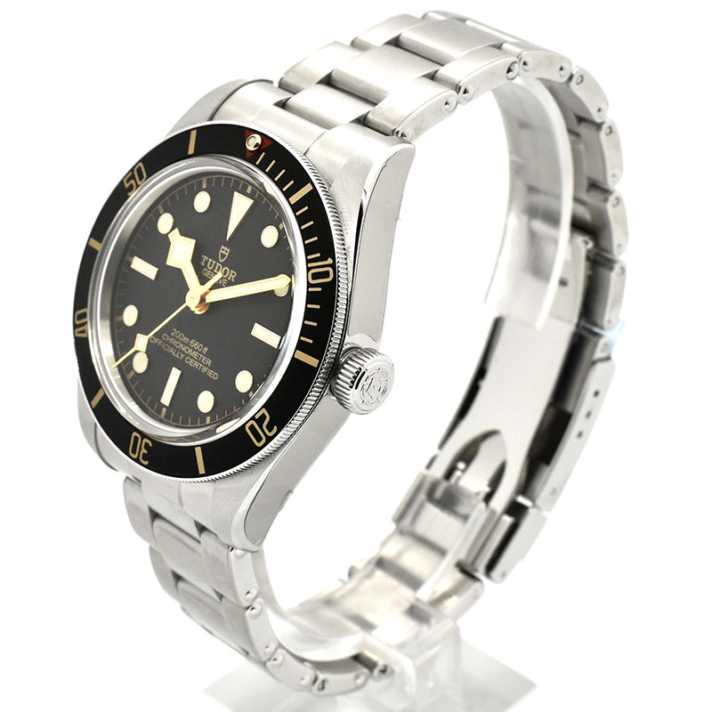 | 店長メモ | 【2018年新作】 こちらはチューダーが1958年に発表した"サブマリーナ ビッグクラウン Ref.7924"からインスピレーションされたモデルになります。 ブラックベイを象徴するイカサブ針を採用したヴィンテージ感溢れるデザインながら、ムーブメントには自社製キャリバー"MT5402"を搭載しパワーリザーブは70時間を誇ります。/200m防水 |