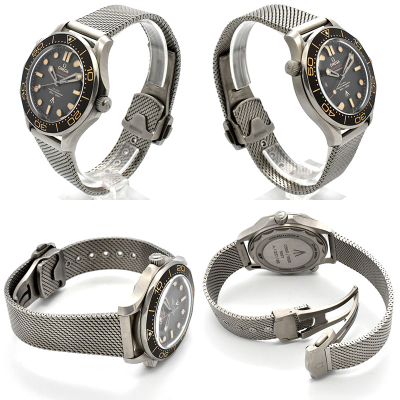 | 店長メモ | 映画『007 ノー・タイム・トゥ・ダイ』の劇中でジェームズ・ボンドが着けているモデルと同一デザインの時計です。 すべてにこだわりを見せるジェームズ・ボンドらしく、素材は軽量化を図るためにチタンが採用され、スイス連邦計量・認定局(METAS)認定の最高水準を誇るコーアクシャルマスタークロノメーターの「キャリバー8806」を搭載。このムーブメントは超高耐磁性能を持っています。 防水性能は300mでデイト表示機能と逆回転防止機能付きの回転ベゼルを装備しています。 そして何より特筆すべきは"軍用時計"という点にこだわり抜いています。 ダイヤルには英軍官給品を表すブロードアロー(矢印型マーク)が描かれ、ケースバックにはいくつものコードナンバーが記されています。 "0552"は海軍所属、“923 7697”はダイバーズウオッチ、"007"はジェームズ・ボンドのエージェントナンバー、“62”は007シリーズの第1作の公開年を表しています。 全体をヴィンテージ調に仕上げ、幾月も愛用されたような雰囲気を醸しだいています。 007ファンに限らず大変魅力的な1本です。 |