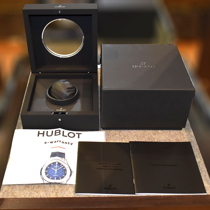 | 店長メモ | 【日本限定】 グラデーションがかったブルーダイヤルに、ブルーヴィンテージアリゲーターのベルトを組み合わせた日本限定モデルです。 *HUBLOT e-warranty(ウブロ電子保証システム)導入に伴い、こちらの個体にはカードタイプの国際保証書は付属しません。 *e-warranty記載日付-2022年8月 |