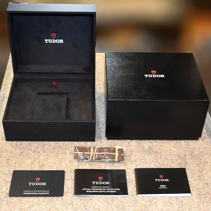 | 店長メモ | 【2021年新作】 チューダーが1958年に発表した"サブマリーナ ビッグクラウン Ref.7924"からインスピレーションされたのが"ブラックベイ フィフティエイト"になります。 こちらはチューダー初のブティック限定モデルとして、ケースやリューズ、ブレスレットまでブロンズ製のブラックベイ フィフティエイトです。 ブラックベイを象徴するイカサブ針も採用したヴィンテージ感溢れるデザインながら、ムーブメントには自社製キャリバー"MT5400"を搭載しパワーリザーブは70時間を誇ります。 |