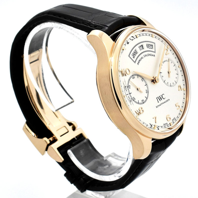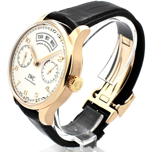 | 店長メモ | ポルトギーゼの完成されたデザインに、自社製ムーブメント"キャリバー52850"を搭載し、パワーリザーブは驚異の168時間を誇ります。 2月以外の日付調整が不要のアニュアルカレンダー機能を備え、その美しい機構はスケルトン仕様のケースバックからご覧いただけます。/30m防水 |