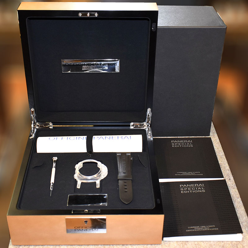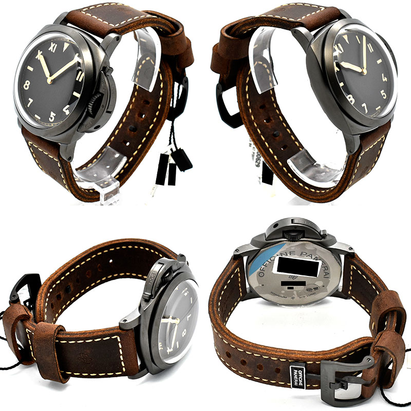 | 店長メモ | 【R番2015年製】 2015年に世界300本限定で発売されたルミノール1950チタニオです。 DLCコーティングされたチタンが採用され、ダイアルはローマ数字とアラビア数字を組み合わせたユニークダイアルとなります。 自社製手巻ムーブメントCal.P.3000を搭載し、パワーリザーブは最大約72時間を誇ります。 |