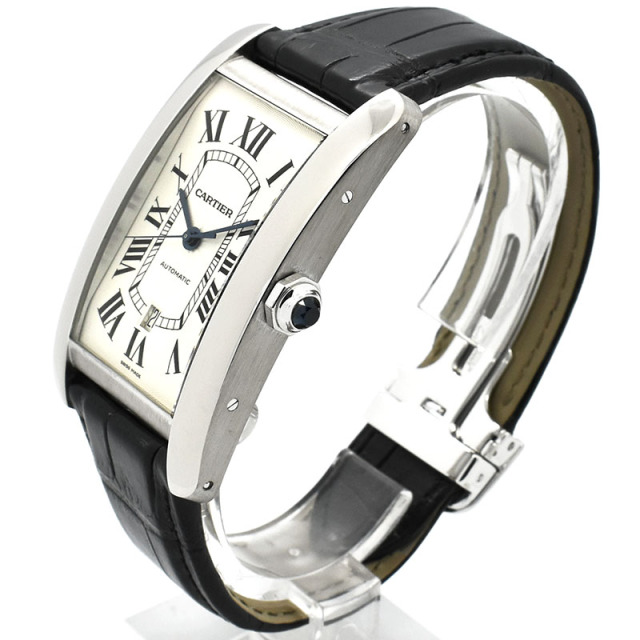 | 店長メモ | カルティエのニューヨーク店が生みの親と言われている“タンクアメリカン”コレクション。 縦長のスクエアケースが特徴的で、カルティエらしい柔らかく上品な印象を醸し出しています。 こちらは縦幅が50mmを超えるXLサイズで、他のモデルとは一線を画す存在感を放っています。 |