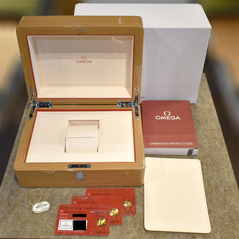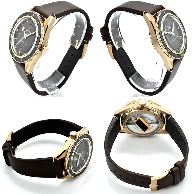 | 店長メモ | 【2021年新作】 ケースやベゼルにオメガ独自の合金"9Kブロンズゴールド"が採用されています。 37.5%のゴールドにブロンズ、パラジウム、シルバー等が混合され、柔らかいピンク色を堪えながらも優れた耐食性をも備えます。 夜光にはヴィンテージスーパールミノヴァを塗布し、風防にはドーム型のサファイアクリスタルが採用されています。 6時位置に筆記体で綴られた"Seemaster300"の文字がこれまでのシーマスターの系譜を思い起こさせながらも、ムーブメントにはマスタークロノメーターのキャリバー8912が搭載され実用性の高いモデルでもあります。 |