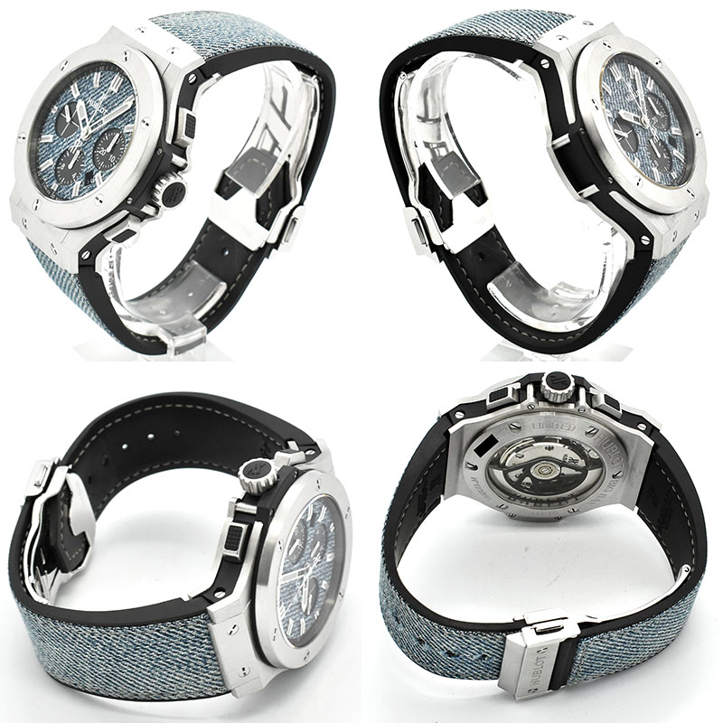 | 店長メモ | 【世界250本限定】 本物のジーンズを文字盤に採用した斬新なビッグバンです。 文字盤に合わせてストラップにもジーンズ素材を用いています。 250本のみの生産で中々市場に流通しない希少なモデルな為、お探しされていた方はお早めにお問い合わせください。 |