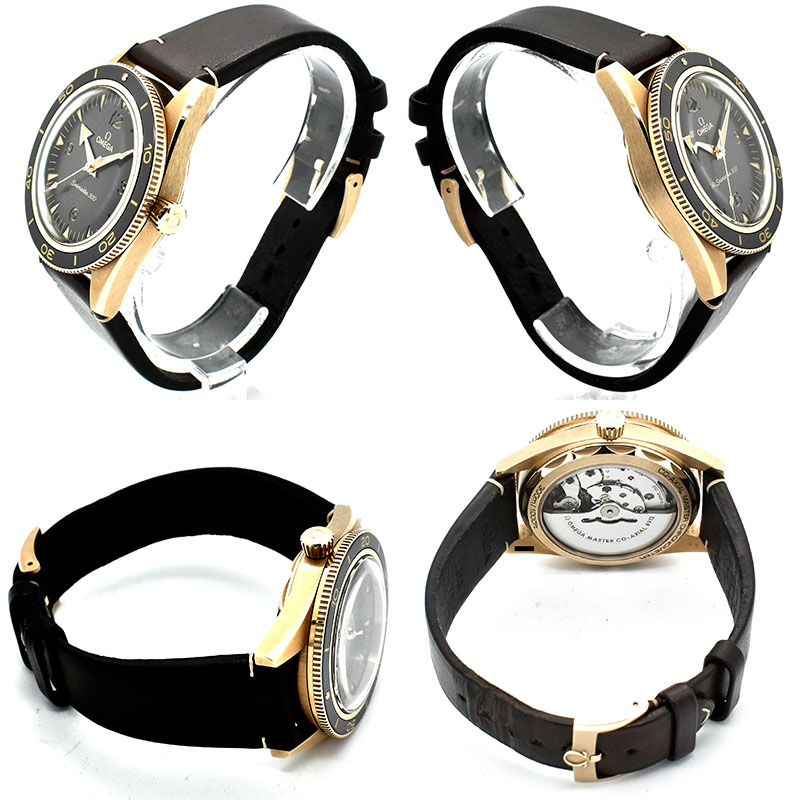 | 店長メモ | 【2021年新作】 ケースやベゼルにオメガ独自の合金"9Kブロンズゴールド"が採用されています。 37.5%のゴールドにブロンズ、パラジウム、シルバー等が混合され、柔らかいピンク色を堪えながらも優れた耐食性をも備えます。 夜光にはヴィンテージスーパールミノヴァを塗布し、風防にはドーム型のサファイアクリスタルが採用されています。 6時位置に筆記体で綴られた"Seemaster300"の文字がこれまでのシーマスターの系譜を思い起こさせながらも、ムーブメントにはマスタークロノメーターのキャリバー8912が搭載され実用性の高いモデルでもあります。 |