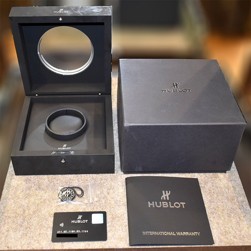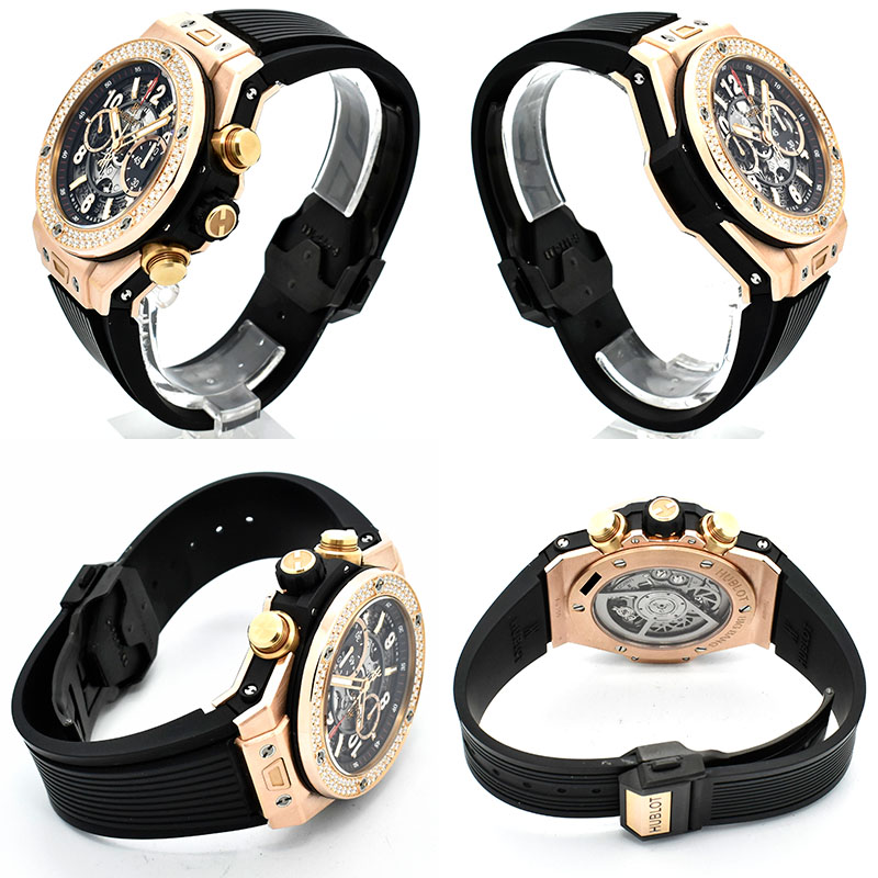 | 店長メモ | 完全自社生産のクロノグラフムーブメント「ウニコ」を搭載。 シースルーの文字盤からは、ウブロ自慢のウニコの機能美を眺める事ができ、ベゼルにはダイヤモンドをあしらったとても高級感溢れる1本です。 |