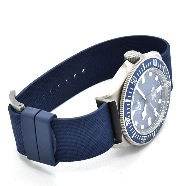 | 店長メモ | フランス海軍の特殊部隊との共同開発で誕生したペラゴス FXD 一塊のブロックから加工し固定されたストラップバーが特徴的で、ケースバックには“Marine nationale”(フランス海軍)が刻印されています。 200m防水を備え、ムーブメントには自社製キャリバーMT5602が搭載されています。 |