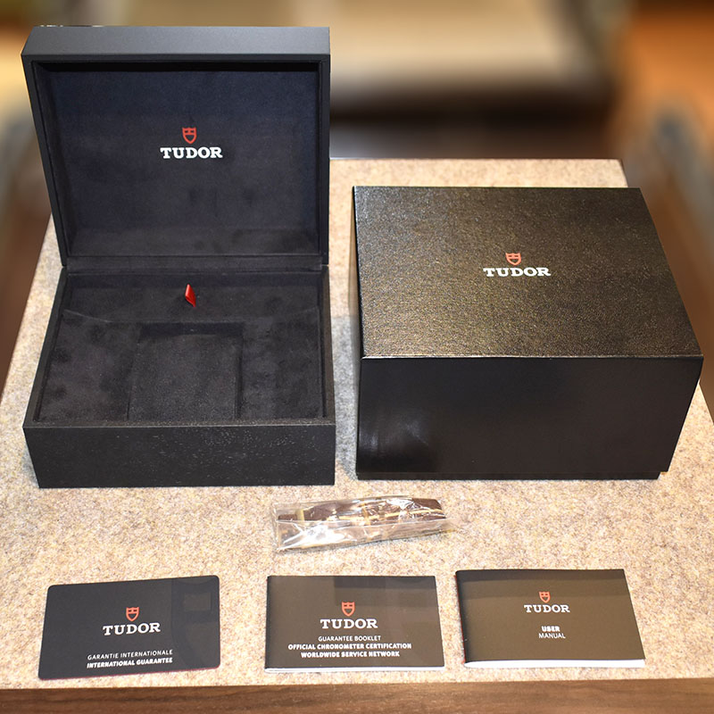 | 店長メモ | 【2021年新作】 チューダーが1958年に発表した"サブマリーナ ビッグクラウン Ref.7924"からインスピレーションされたのが"ブラックベイ フィフティエイト"になります。 こちらはチューダー初のブティック限定モデルとして、ケースやリューズ、ブレスレットまでブロンズ製のブラックベイ フィフティエイトです。 ブラックベイを象徴するイカサブ針も採用したヴィンテージ感溢れるデザインながら、ムーブメントには自社製キャリバー"MT5400"を搭載しパワーリザーブは70時間を誇ります。 |
