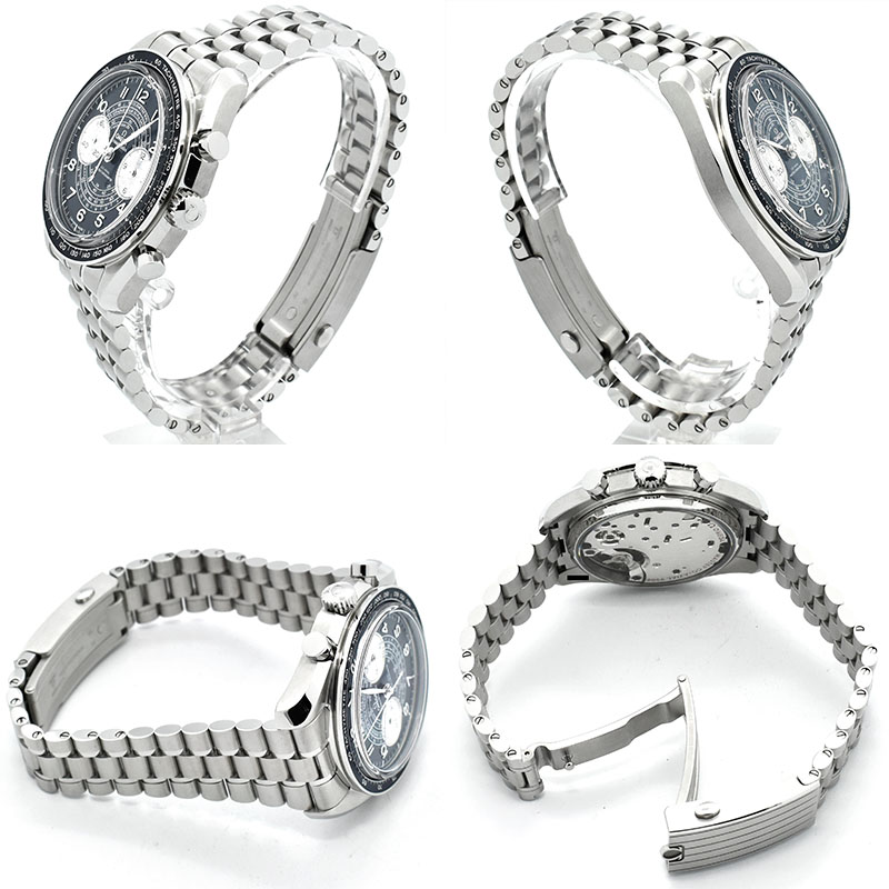 | 店長メモ | 【2021年新作】 スイスの厳格な検査をパスした証である「マスタークロノメーター」認定を受けたコーアクシャルムーブメント「キャリバー9908」を搭載。 3時位置のカウンターで60分と12時間の積算針を搭載し、9時位置にスモールセコンドを備えています。 ダイヤル中央には、タキメーター、テレメーター、パルスメーターが1940年代のスネイルデザインを用いてプリントされています。/50m防水 |