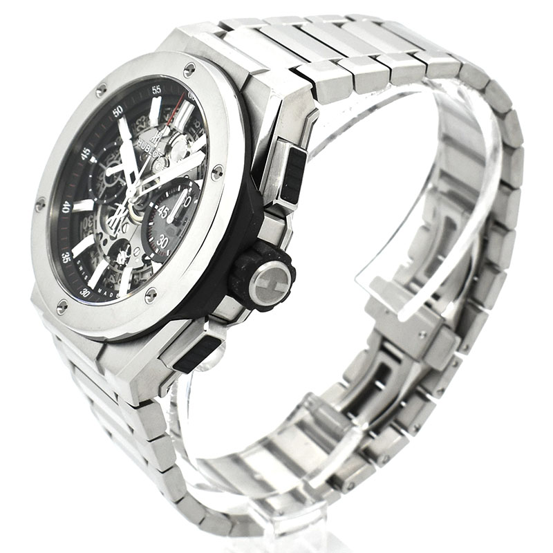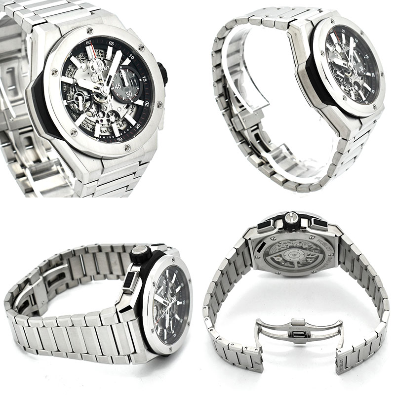 | 店長メモ | ウブロを代表するコレクションの一つ"ビッグバン"から新たに誕生したモデルです。 チタニウム製のケースとブレスが一体化された仕様で、ポリッシュとサテン仕上げの多面カットを組み合わせたラグジュアリースポーツモデルです。 ムーブメントには自社開発されたHUB1280が搭載され、パワーリザーブは約72時間を誇ります。 |
