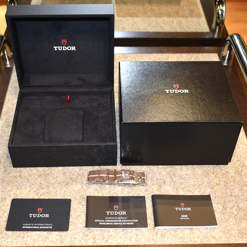 | 店長メモ | チューダーが1958年に発表した"サブマリーナ ビッグクラウン Ref.7924"からインスピレーションされたのが"ブラックベイ フィフティエイト"になります。 こちらはチューダー初のブティック限定モデルとして、ケースやリューズ、ブレスレットまでブロンズ製のブラックベイ フィフティエイトです。 ブラックベイを象徴するイカサブ針も採用したヴィンテージ感溢れるデザインながら、ムーブメントには自社製キャリバー"MT5400"を搭載しパワーリザーブは70時間を誇ります。 ブロンズ特有の経年変化を楽しみながら、時計と共に時を刻んでいくというのはいかがでしょう? |