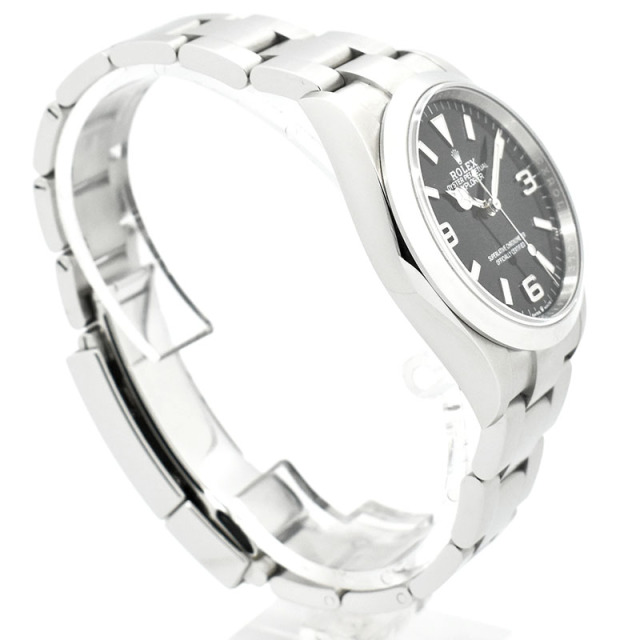 | 店長メモ | ケース径が先代の39mmから往年の36mmにサイズダウンしました。 ムーブメントにはクロノメーター認定の自社製"Cal.3230"を搭載しパワーリザーブは70時間を誇ります。 エクスプローラー1としての基本的なデザインはそのまま踏襲しつつさらに実用性を向上させたモデルとなっております。/100m防水 |
