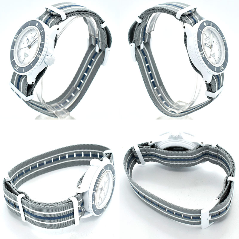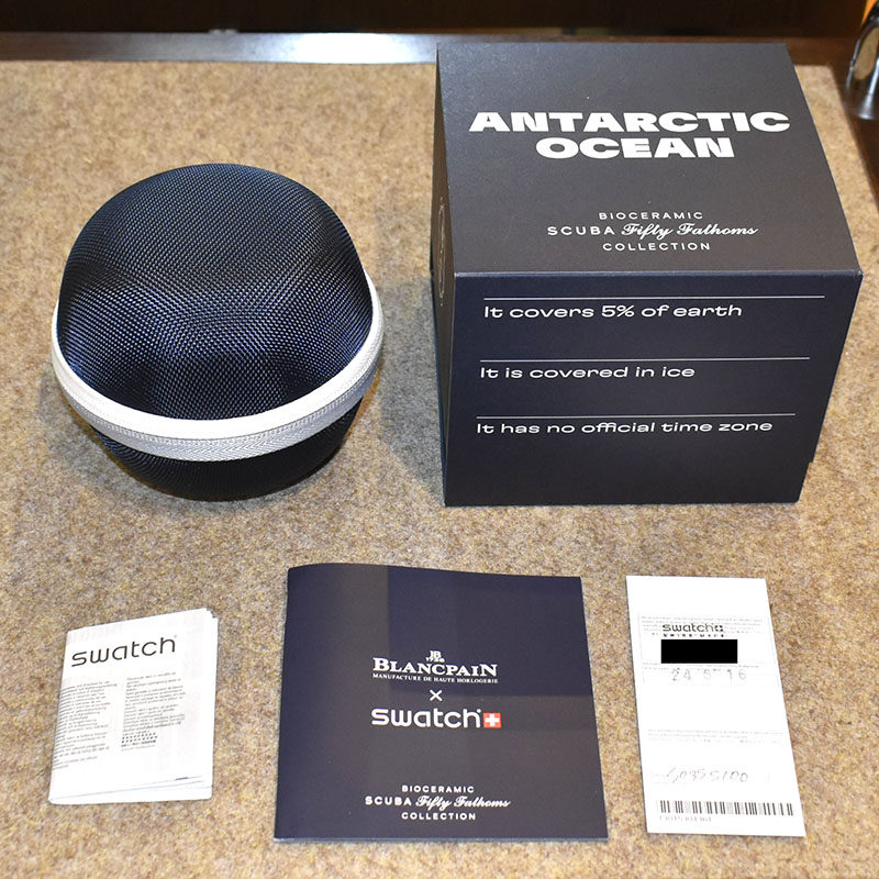 | 店長メモ | 【2023年新作】 世界最古の歴史あるメーカー「ブランパン」を代表するコレクション「フィフティファゾムス」とスウォッチのコラボレーションモデルです。 材質には新素材"Bioceramic"が採用され、ケースバックからは5大洋に生息するカラフルなウミウシのイラストが見られる仕様です。 |