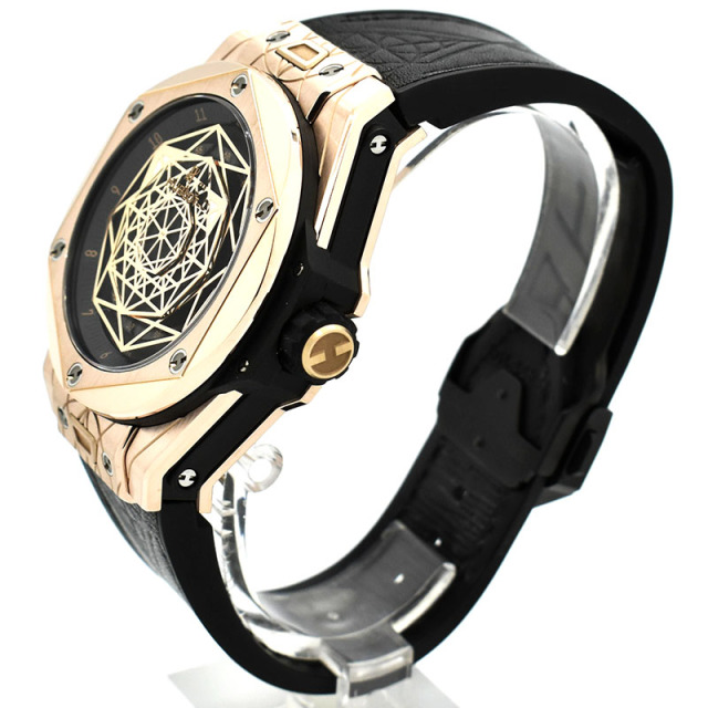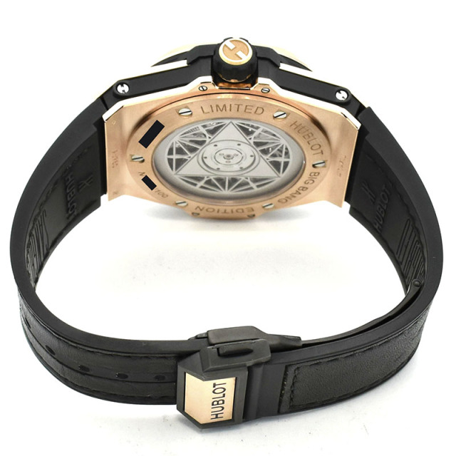 | 店長メモ | 【世界100本限定】 イギリスのタトゥースタジオ"サンブルーロンドン"のタトゥーアーティストであるマキシム・ビューチ氏がアンバサダーとしてデザインしたモデルです。 "数々のアートを融合し、基本的に全く異なる世界を一つにする"というウブロの望みをマキシム・ビューチ氏が幾何学的なデザインで具現化しています。 この驚くほど大胆且つ独創的なデザインは、使用者だけで無く、見る者にも素晴らしい衝撃を与えてくれます。 生産数が100本限定と限られていますので、気になられる方はお早めのお問合せをお薦め致します。/100m防水 |