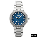 36.5mmのステンレススティールケースにマザーオブパールダイヤルを組み合わせた、上品さとスポーティさを兼ね備えた一本です。 ダイバーズウォッチならではの力強さの中にエレガントな表情を演出し、300m防水も備えた実用性にも優れたモデルです。 |