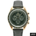 オメガを代表するモデルの一つであるムーンウォッチのムーンシャインゴールドモデルです。 ケース素材にはオメガ独自のイエローゴールド合金のムーンシャインゴールドが採用されています。 一般的なイエローゴールドより淡い色合いを持ち、経年変化に強いという特徴を持ちます。 ムーブメントには15000ガウスの耐磁性能を誇りマスタークロノメーター認定ムーブメント"Cal.3861"を搭載。 ベゼルの90の上にはドットが打たれている有名な"ドットオーバー90"が採用されています。 ダイヤルやベゼルにはグリーンカラーが採用され、見る者の目を奪う美しい仕上がりです。 |