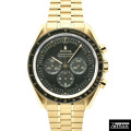 オメガを代表するモデルの一つであるムーンウォッチのムーンシャインゴールドモデルです。 ケース素材にはオメガ独自のイエローゴールド合金のムーンシャインゴールドが採用されています。 一般的なイエローゴールドより淡い色合いを持ち、経年変化に強いという特徴を持ちます。 ムーブメントには15000ガウスの耐磁性能を誇りマスタークロノメーター認定ムーブメント"Cal.3861"を搭載。 ベゼルの90の上にはドットが打たれている有名な"ドットオーバー90"が採用されています。 ダイヤルやベゼルにはグリーンカラーが採用され、見る者の目を奪う美しい仕上がりです。 |