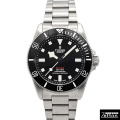 ロレックスのセカンドラインとして低価格で高品質なモデルを世に送り出す「TUDOR」。 「イカサブ」を彷彿させるアンティーク調なデザインに200mもの防水性能を備えます。 チタン製ですので見た目とは違い大変軽量で実用的な1本な上、ケース径が従来の42mmモデルより一回り小振りな39mmという点も、大きさが理由で逡巡されていた方にも最適なモデルではないでしょうか。 |
