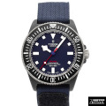 フランス海軍の特殊部隊との共同開発で誕生したペラゴス FXD アリンギ・レッドブル・レーシングとのパートナーシップを記念したモデルで、ケース素材にはカーボンコンポジットが採用されています。 固定された堅牢なストラップバーが特徴的で、200m防水を備え、ムーブメントには自社製キャリバーMT5602が搭載されています。 |