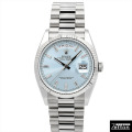 ロレックス最上級ラインの一つデイデイトです。 プラチナ製の36mmオイスタ―ケースに、インデックスにはダイヤモンドをセッティングし、プラチナモデル専用のアイスブルーダイヤルを組み合わせた美しさが際立ったモデルです。 ムーブメントは約70時間のパワーリザーブを誇るキャリバー3255を搭載しています。 |