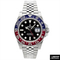 初期を彷彿とさせる赤/青ベゼルのGMTマスター、通称「ペプシ」モデルです。 ベゼルの素材にはセラミックが用いられ、見た目だけではなく対傷性等にも優れた仕上がりになっております。 GMT(2カ国の時間表示)機能付きでビジネスや海外旅行でも安心で、100メートル防水と実用性も抜群のモデルです。 |