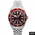 【2025年新作】 ブラックベイを象徴するイカ針を採用したヴィンテージ感溢れるデザインながら、鮮やかなバーガンディダイヤルが印象的なモデルです。 |