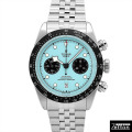 フラミンゴから青を連想する人はまずいないでしょう。 フラミンゴブルーと聞いてから時計を見た時に、ん?と疑問に思う方が多いのではないでしょうか。 フラミンゴブルーは何からも異なっている、だからこそ新しいブラックベイ クロノモデルとして他のコレクションには見られない鮮やかなターコイズブルーダイヤルが採用されました。 周りと異なることを恐れない人のためにおすすめしたい時計です。 |