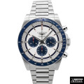 シルバーマット文字盤にブルーカウンターが映え、爽やかな存在感を演出します。 約59時間パワーリザーブに10気圧防水を備え、オンオフ問わず頼れる一本です。 |