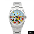 耐磁・耐衝撃性に優れたキャリバー3230を搭載し、パワーリザーブは約70時間を誇ります。 背景のダイヤルカラーは通称"ティファニーブルー"と呼ばれている爽やかなターコイズブルーが採用され、カラフルな5色の様々な大きさのドットが散りばめられた幸福感に満ちたデザインです。 元々人気の高いダイヤルでしたが、2025年に生産終了となった為にさらに希少性が増し、今後益々入手困難なモデルになる事が予想されます。 お探しされていた方は、この機会を買い逃しなく! |