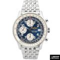 ナビタイマーの伝統的な意匠を色濃く受け継ぐ、クラシカルな魅力あふれるオールドナビタイマー。 航空計算尺付きベゼルと、情報量の多い端正なダイヤルレイアウトが、計器のような存在感を演出します。 ブルーダイヤルが爽やかさと上品さを添え、自動巻きクロノグラフとしての実用性も十分。 ブライトリングらしい王道の魅力を、落ち着いた雰囲気で楽しめる一本です。 |