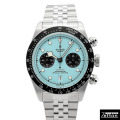 フラミンゴから青を連想する人はまずいないでしょう。 フラミンゴブルーと聞いてから時計を見た時に、ん?と疑問に思う方が多いのではないでしょうか。 フラミンゴブルーは何からも異なっている、だからこそ新しいブラックベイ クロノモデルとして他のコレクションには見られない鮮やかなターコイズブルーダイヤルが採用されました。 周りと異なることを恐れない人のためにおすすめしたい時計です。 |