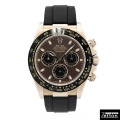 デイトナのエバーローズゴールドモデルにブラックセラミックベゼルが採用され、ケースとのコントラストが非常に美しい1本です。 こちらはコレクションの中でも特に人気の高かったチョコレート/ブラックダイヤルです。/100m防水 |