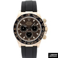 デイトナのエバーローズゴールドモデルにブラックセラミックベゼルが採用され、ケースとのコントラストが非常に美しい1本です。 こちらはコレクションの中でも特に人気の高かったチョコレート/ブラックダイヤルです。/100m防水 |