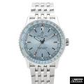 | 店長メモ | ナビタイマーの特徴の一つである回転計算尺を備えつつ、アイスブルーカラーで統一した爽やかなお時計です。 |