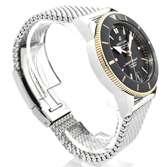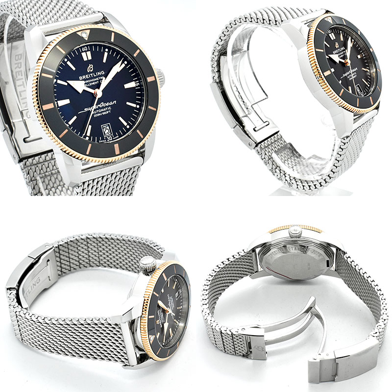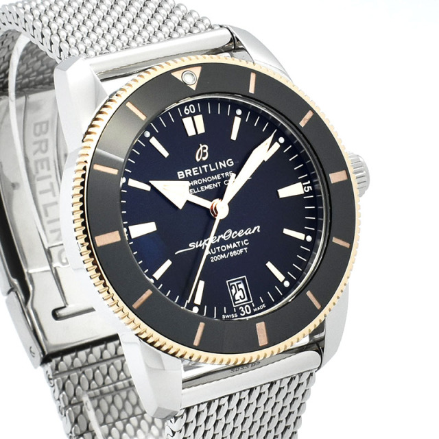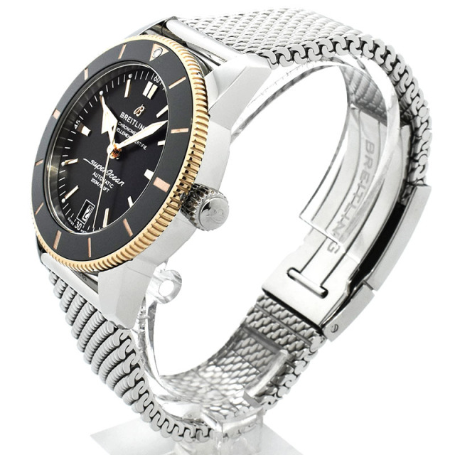 | 店長メモ | スーパーオーシャン誕生60周年を迎えスーパーオーシャンヘリテージがバージョン2へと進化致しました。 クラシカルなダイバーデザインはそのままにベゼルが傷のつきにくいセラミックに変更され、70時間のパワーリザーブを誇る自動巻きムーブメント「ブライトリングB20」へと換装されました。 進化したスーパーオーシャンをあなたの腕元にいかがでしょうか? |