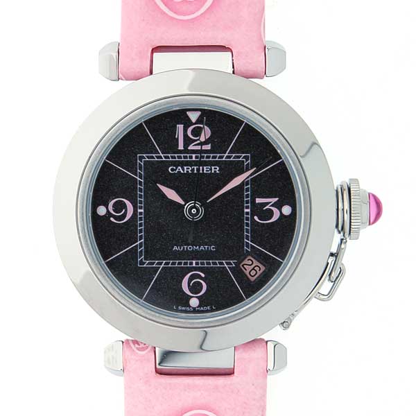 | 店長メモ | 2007年冬季限定モデル/ケース径35mm/自動巻きムーブメント/日常生活防水/ラメ入り黒文字盤/サファイアガラス/ホールディングバックル付きトワルストラップ/国際保証書、説明書、純正ボックス付き |