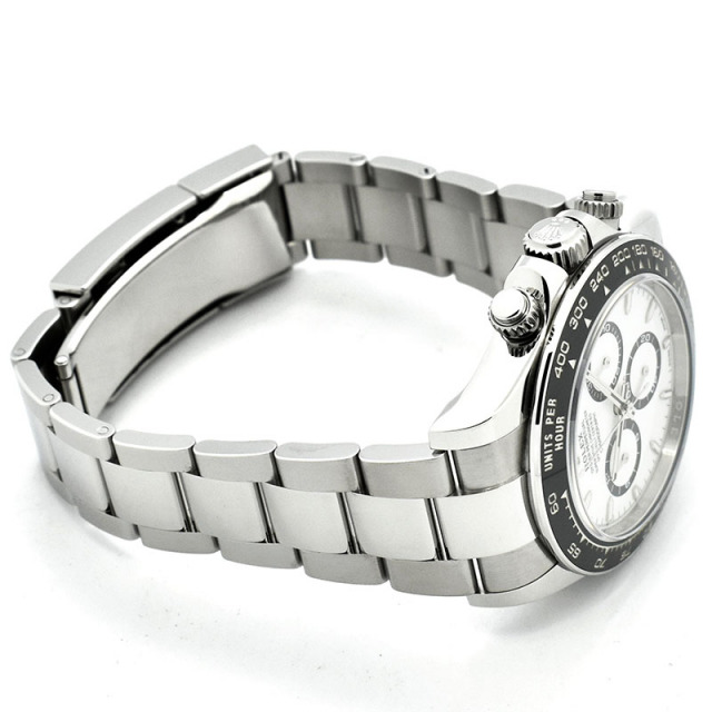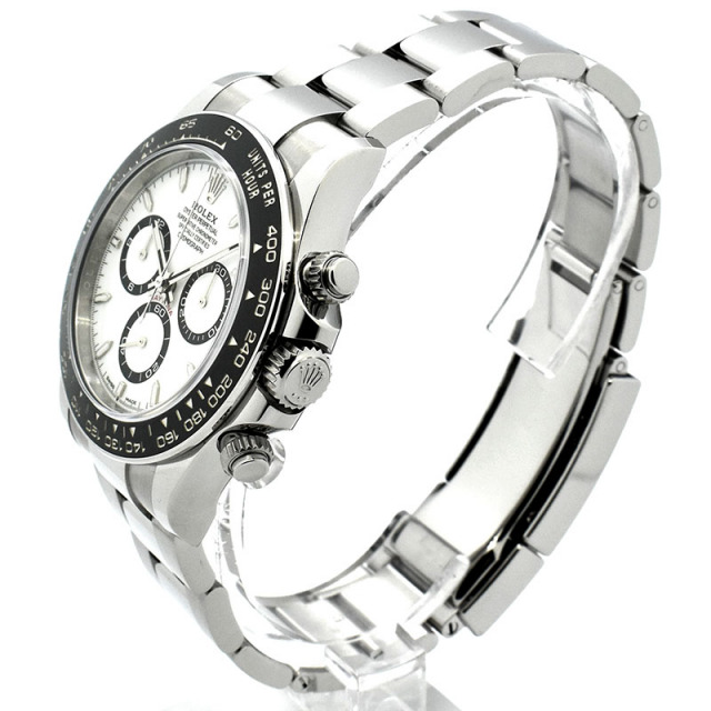 | 店長メモ | 【2023年新作】 前モデルのRef.116500LNと比較してベゼルの縁がメタルになり、インデックスやインダイヤルがシャープな印象となりました。 6時位置のSWISSとMADEの間に王冠マークが配され、ムーブメントにはCal.4131が搭載されています。 |